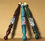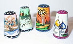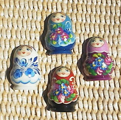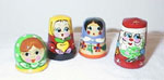 Santas, girls, boys -- brightly painted on wooden thimbles.